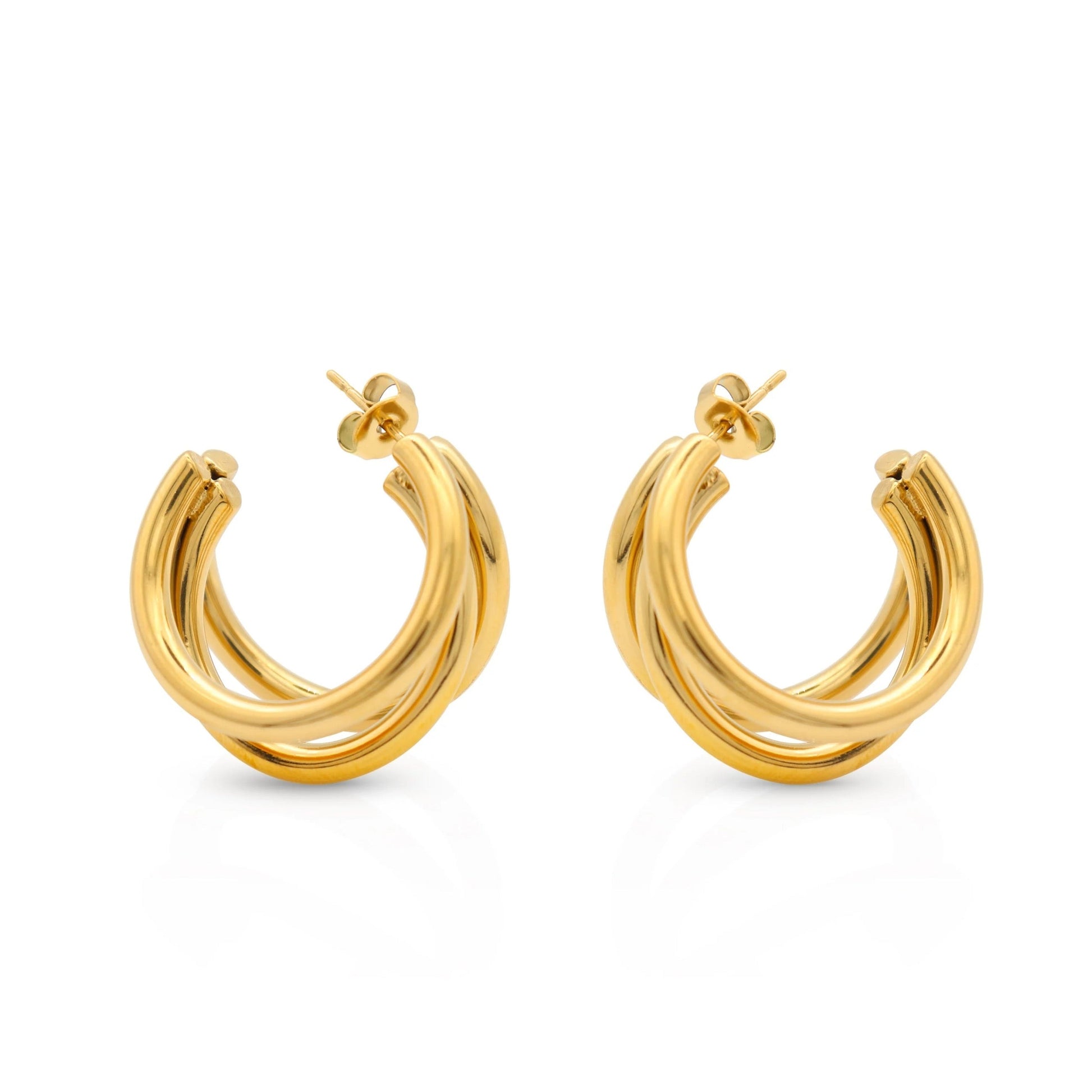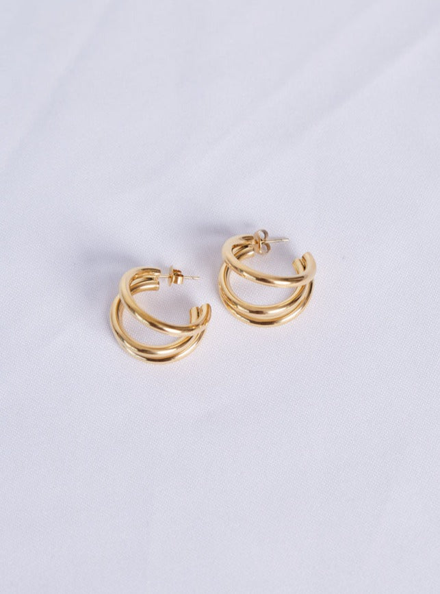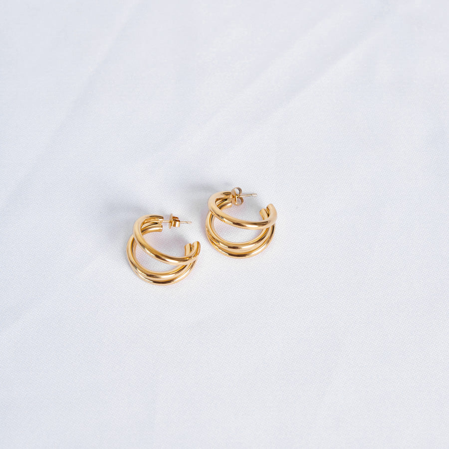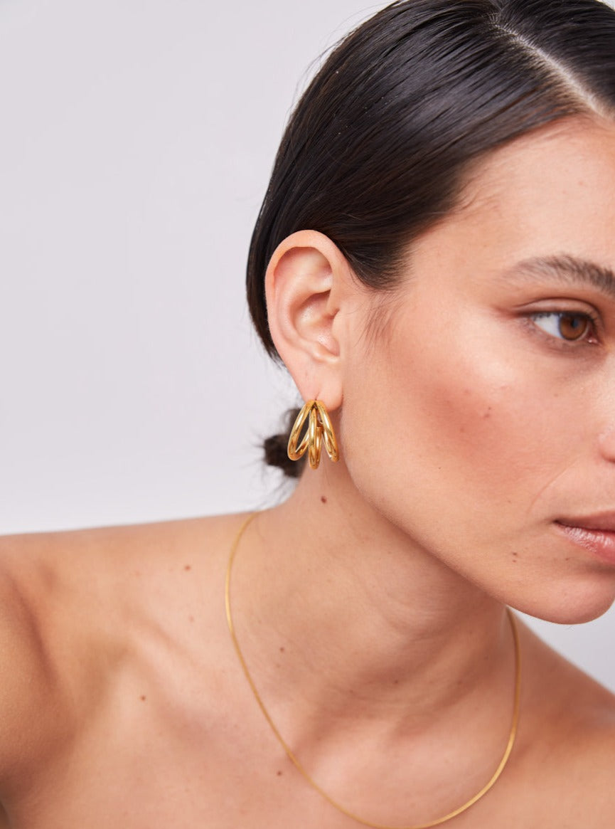 Si eres fan de las argollas, los aros Emilia te encantarán. Ya que dan el aspecto de ser tres en una, y son súper cómodas y livianas.