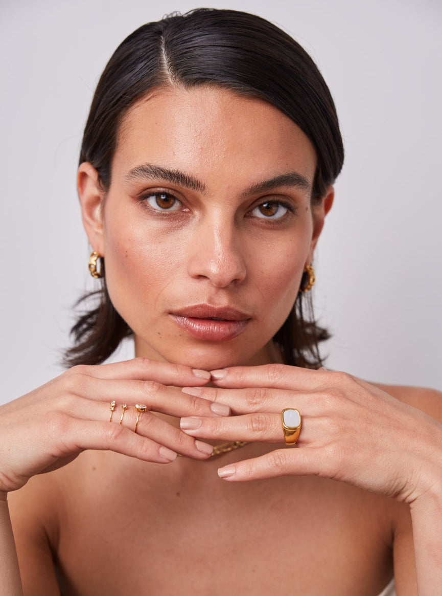 Con nuestro anillo Bali, podras lucir los mejores looks veraniegos, con su piedra blanca, le dará el toque de frescura que tus manos necesitan.