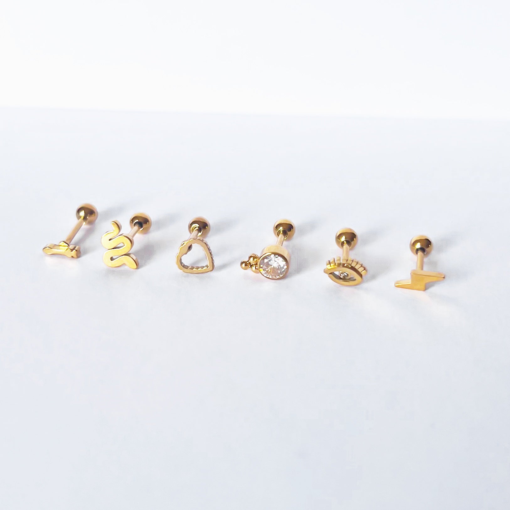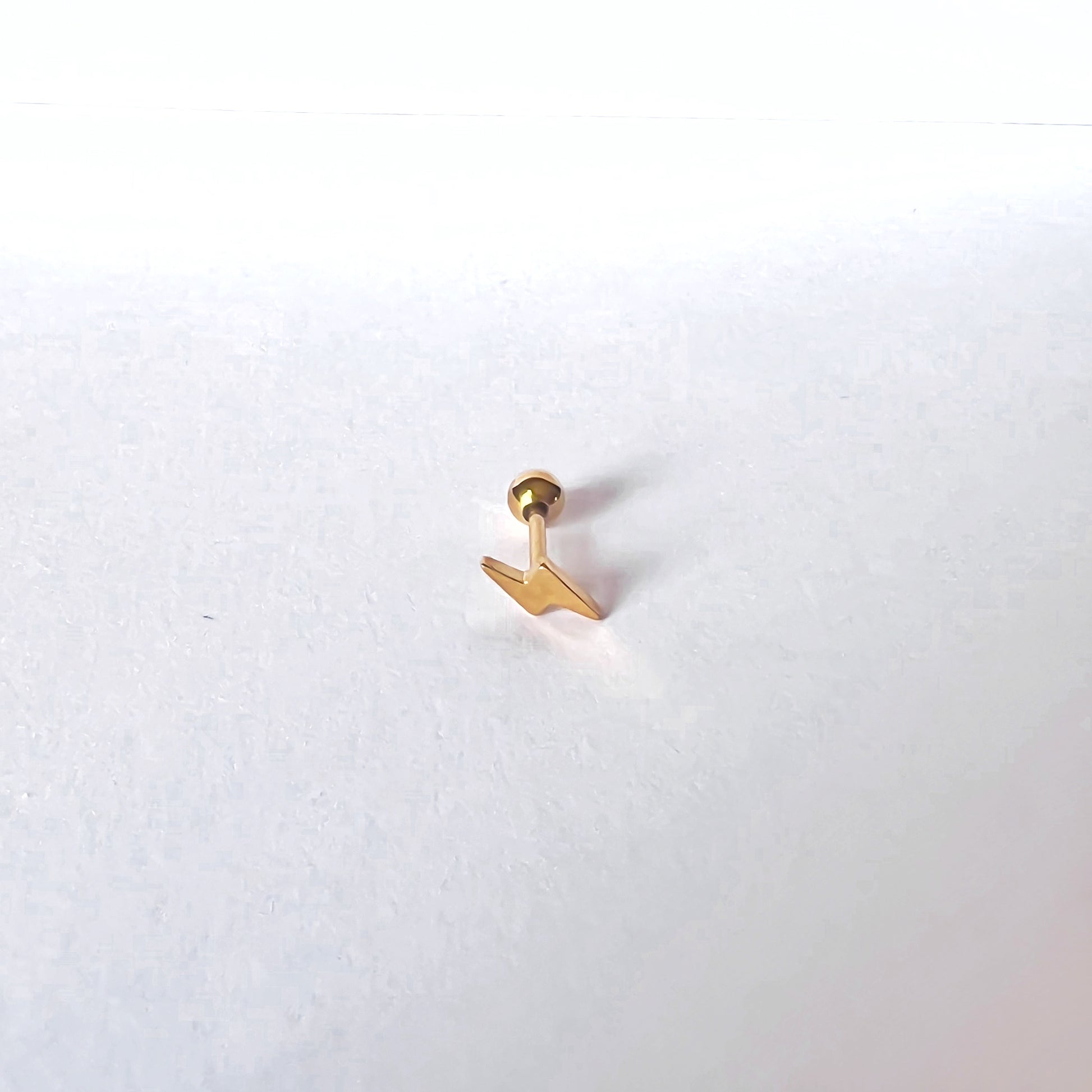 Piercing Rayo, es un aro con forma de rayo. Cuenta con un tornillo redondo, y es un complemento perfecto para usar con tus otros aros Vacler.